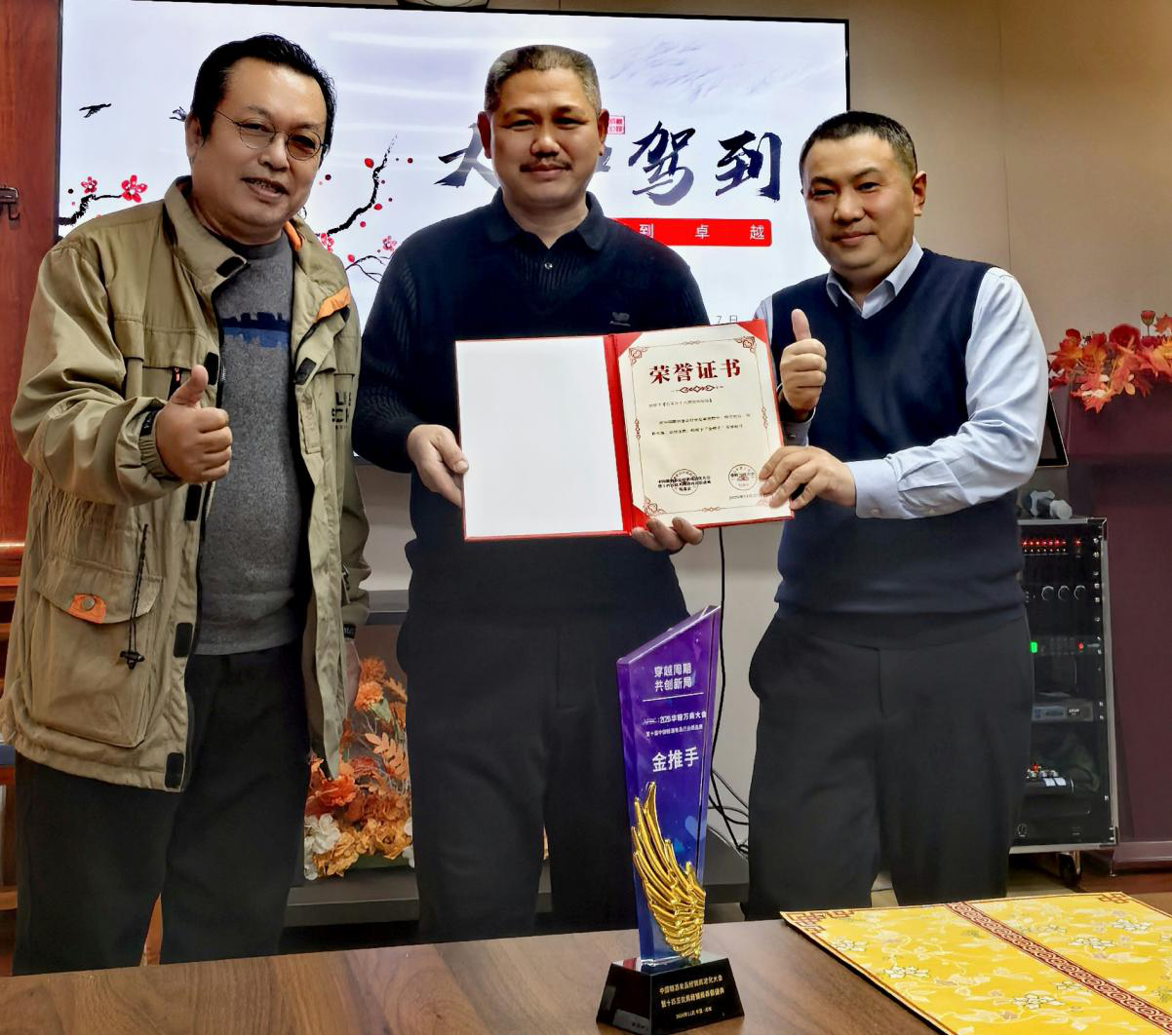 正定塔元庄爱国拥军基地主任陈建民的发言同样精彩纷呈,他介绍了基地在品牌建设方面的独特做法与显著成效,为与会者提供了有益的借鉴。会上,刘会民总经理向十八酒坊文化体验馆创始人李强颁发了2025华糖万商大会第十届中国糖酒食品行业精品展的“金推手”奖状与奖杯,以表彰其在品牌建设方面的杰出贡献。